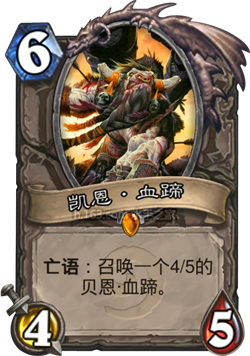 凯恩被加尔鲁什杀害了,所以...别把这张牌放在战士的套牌里,这完全说不通。